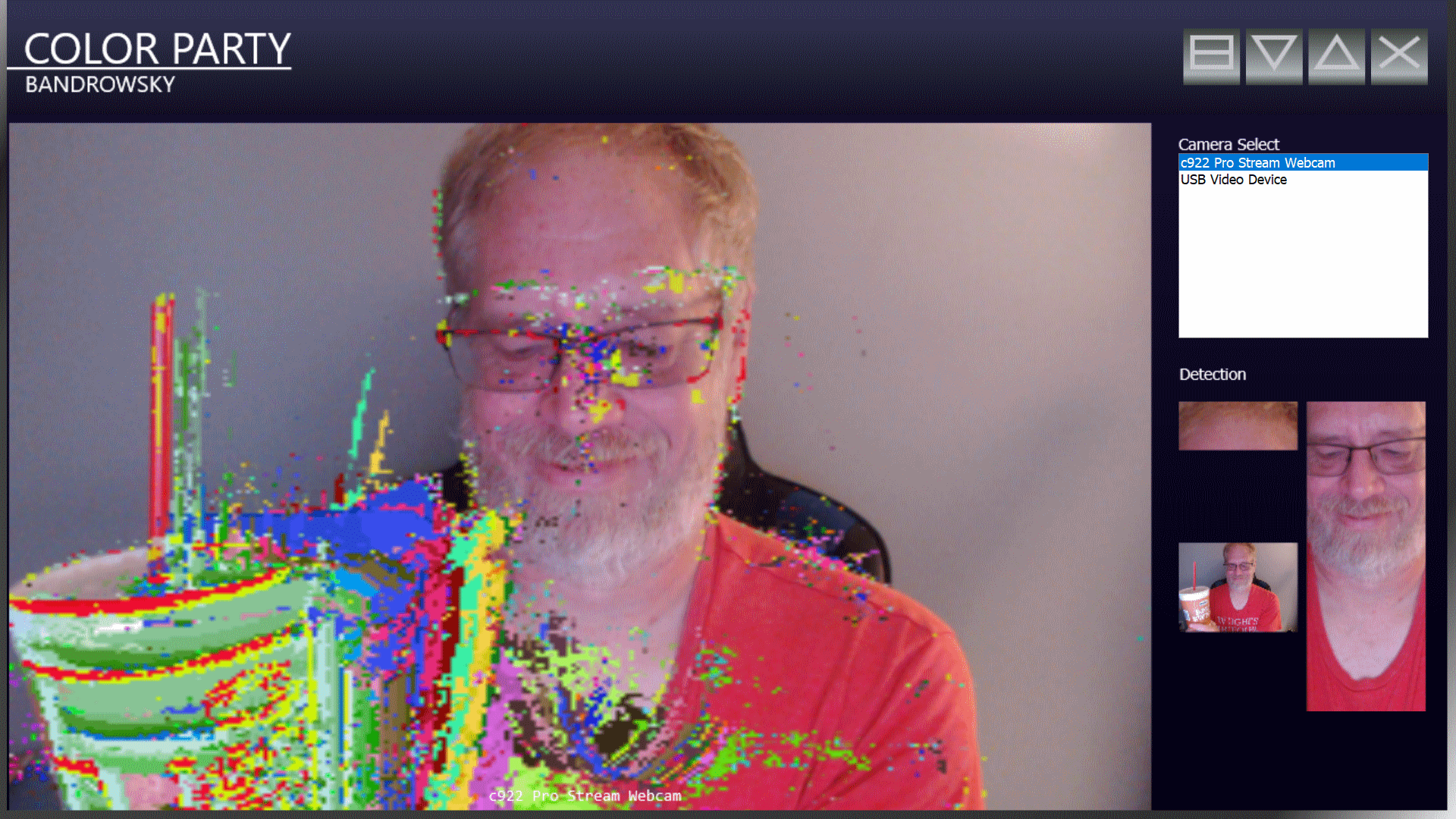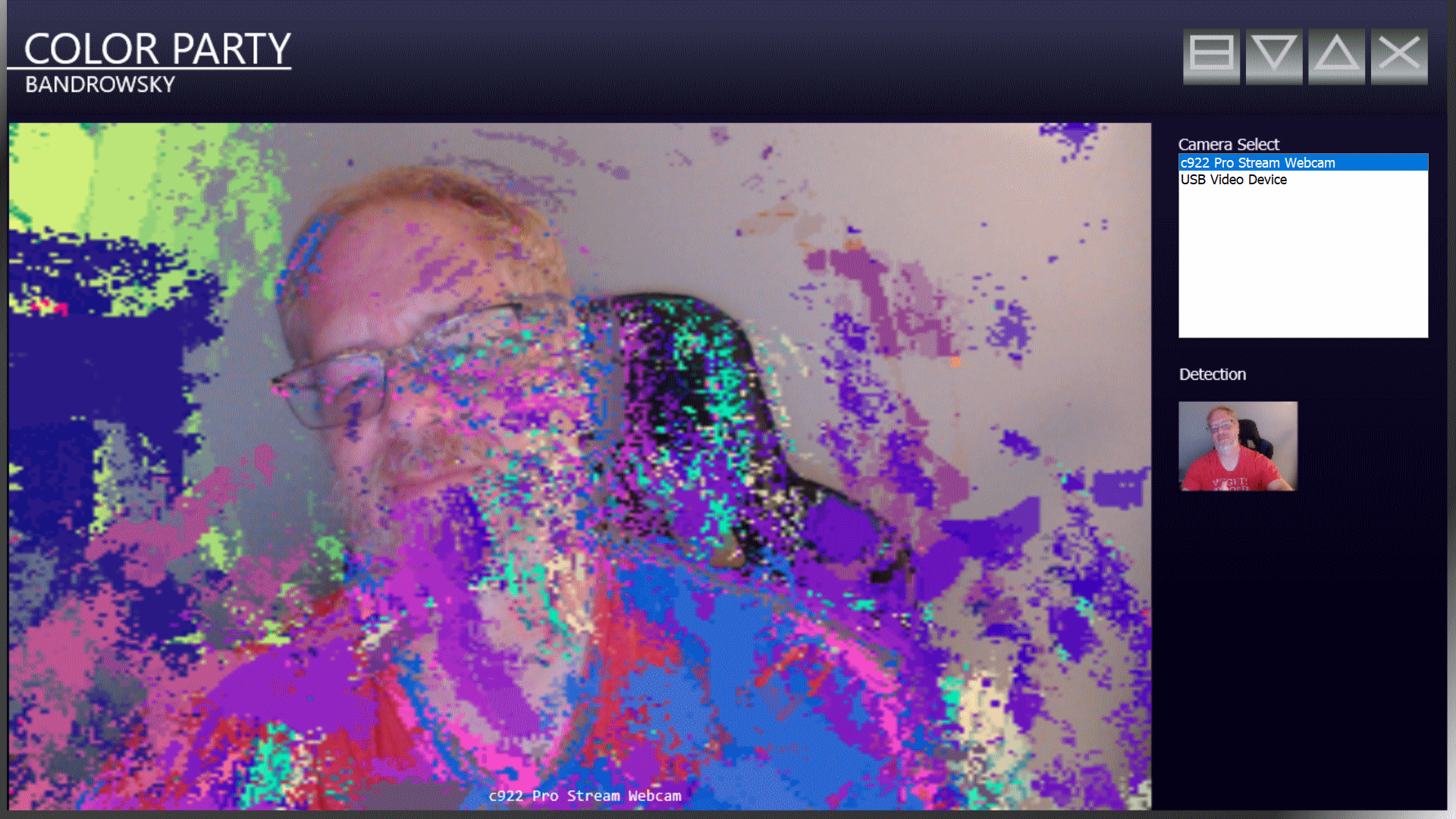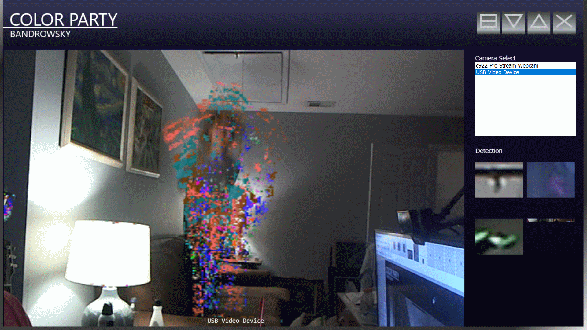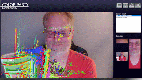 Color Party is a kind of thing where you have a camera, a PC with either a projector or a big screen. It's a communal kind of thing, where people are all on the screen together interacting with colors.